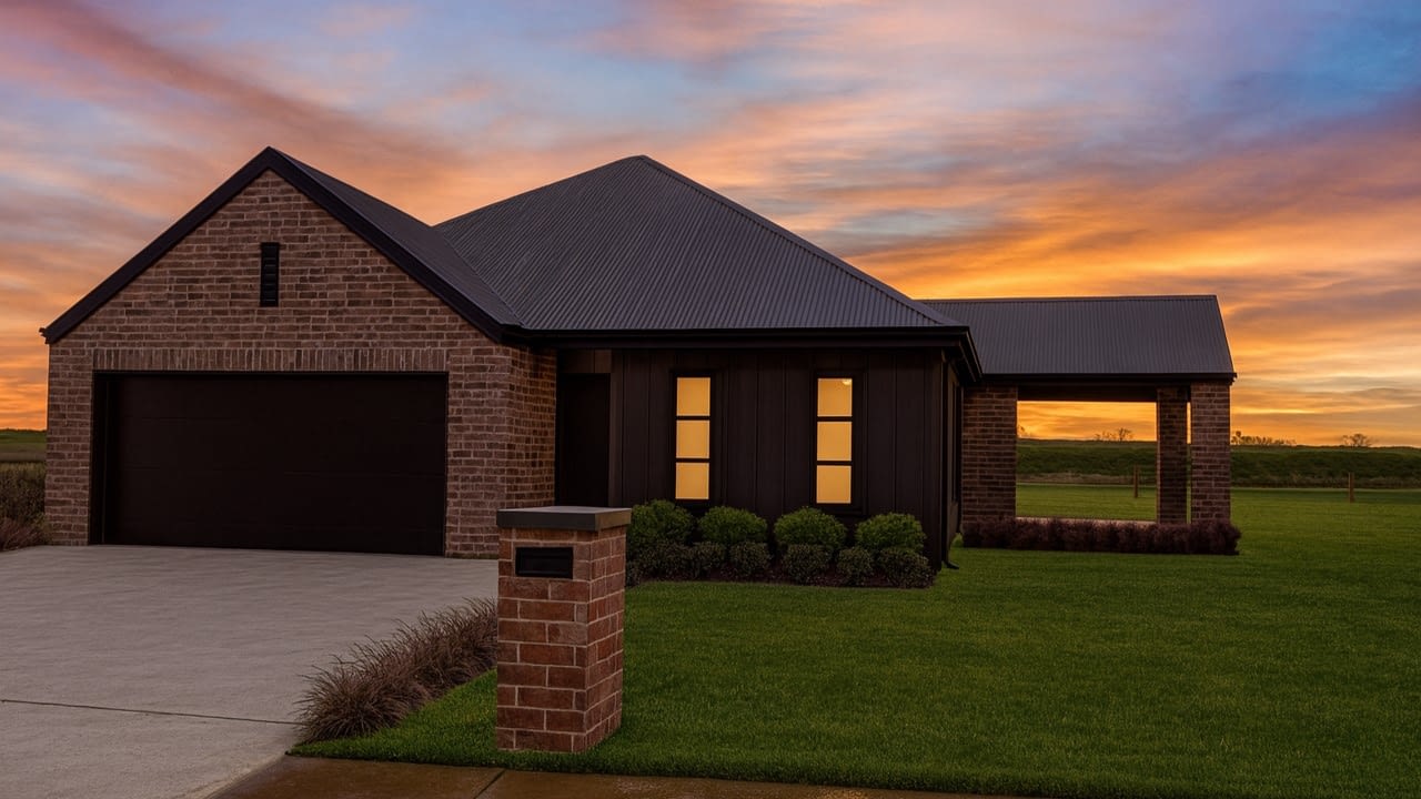 Features include: 3 bedrooms, 2 bathrooms including ensuite Separate office / study Spacious open-plan kitchen, dining & living with great indoor–outdoor flow Outdoor covered patio area for entertaining Designer kitchen with island bench & quality finishes Double internal-access garage for secure parking & storage Durable cladding mix with attractive street appeal, Brand-new build approx. 177m² on a 595m² section